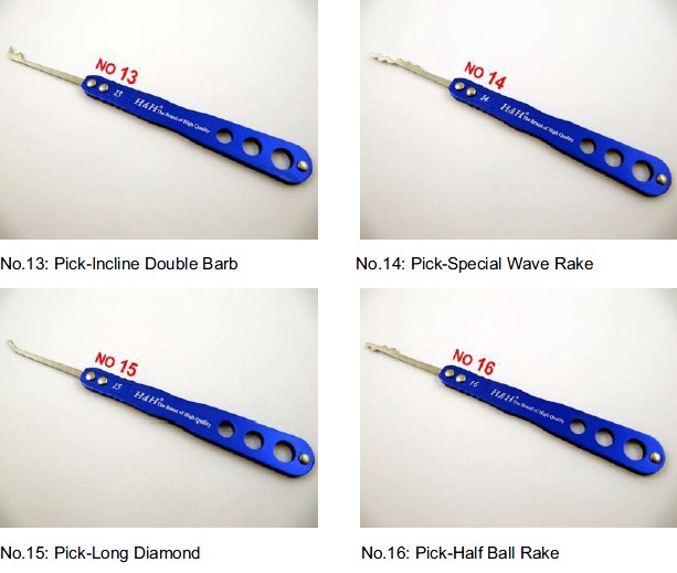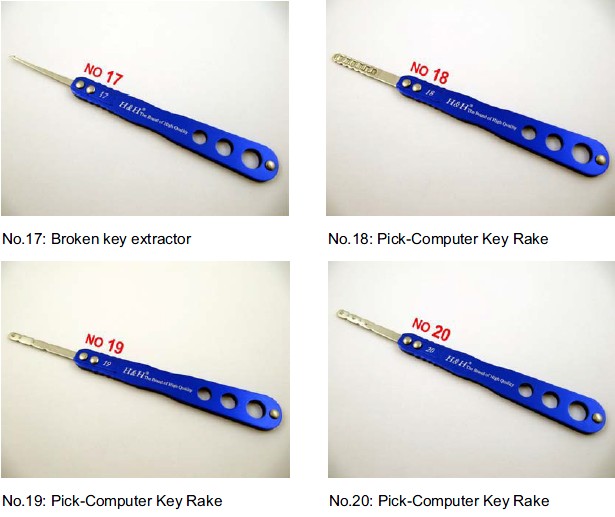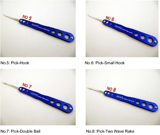 This pick set provides versatile selections to help locksmiths to solve all problems from opening every kind of pin tumber of disc tumber locks.